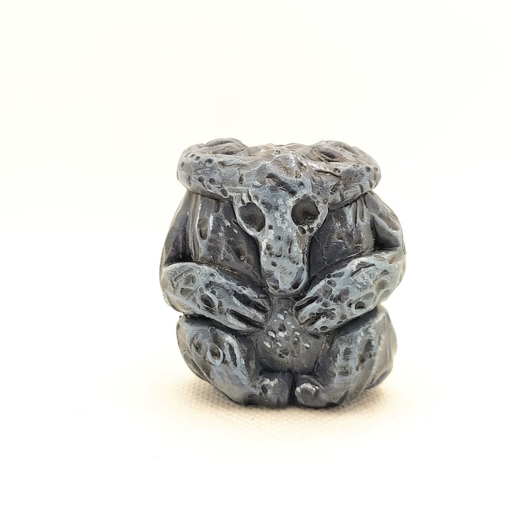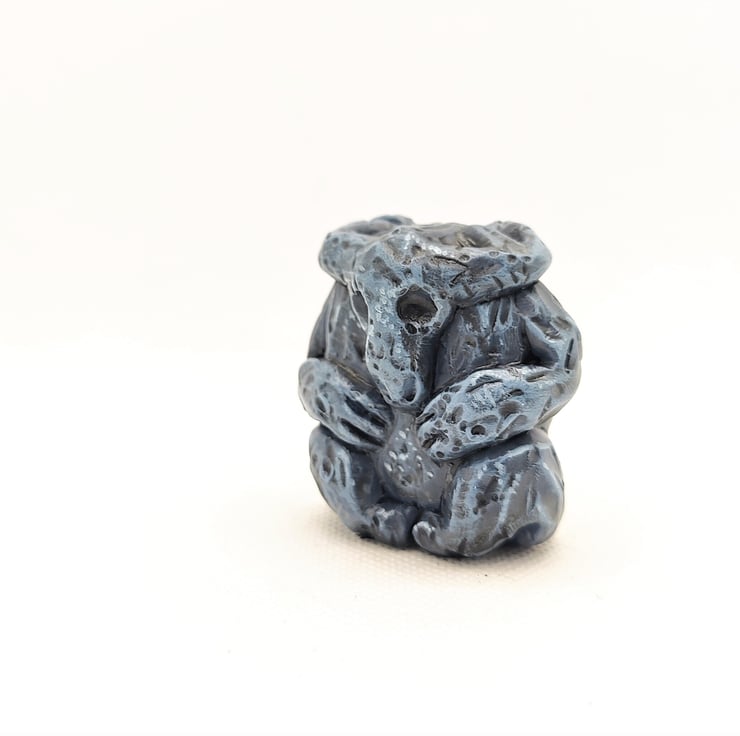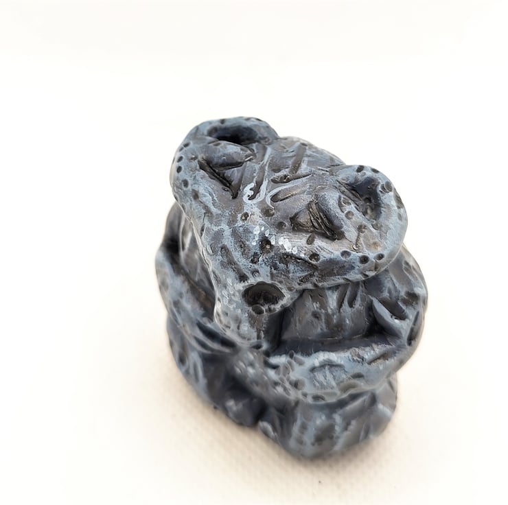 This totem is handmade. Sculpted using polymer and epoxy clay. Extra detail is carved into its surface.