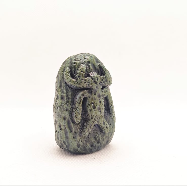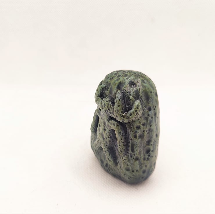 This totem is handmade. Sculpted using polymer and epoxy clay. Extra detail is carved into its surface.