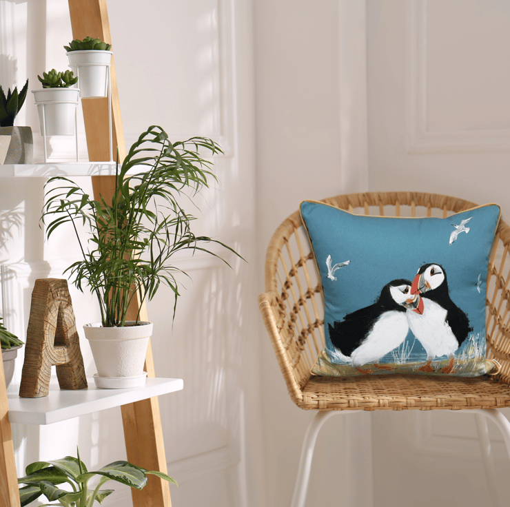Handmade Cushion  puffin Coastal handmade cushion puffins
