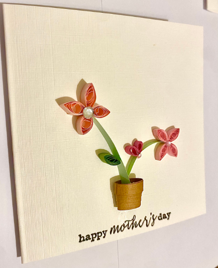 Each one of these cards has been handmade using a art technique called paper Quilling. In which strips of different colored paper are used to create 3D images.