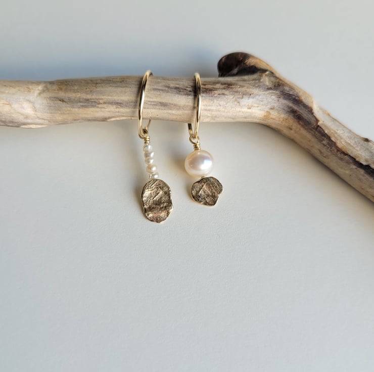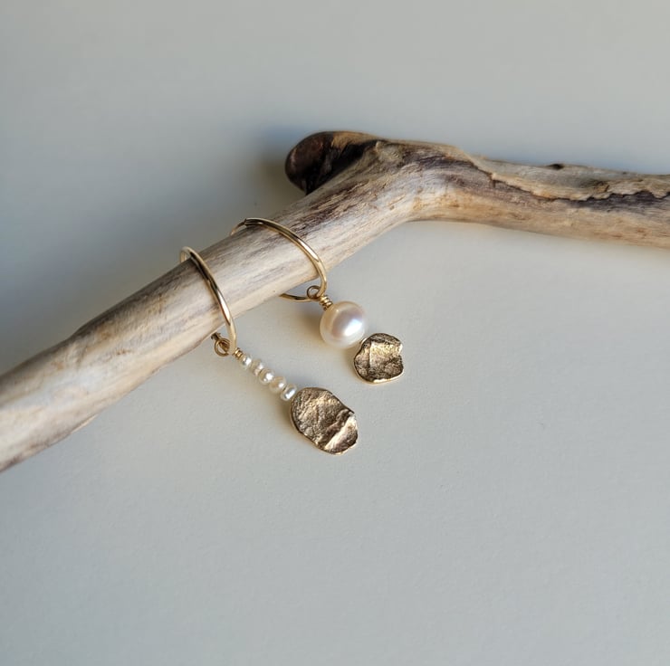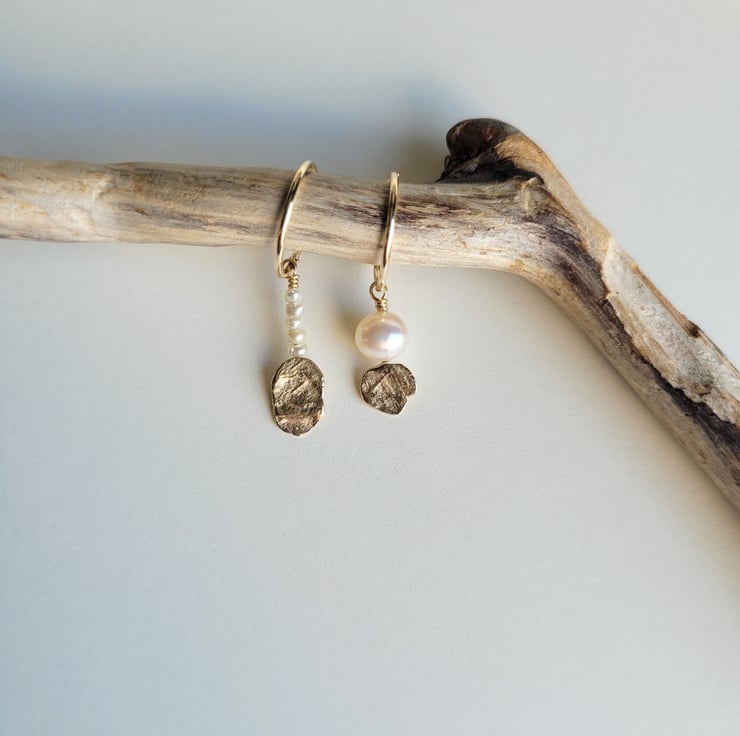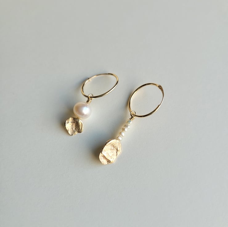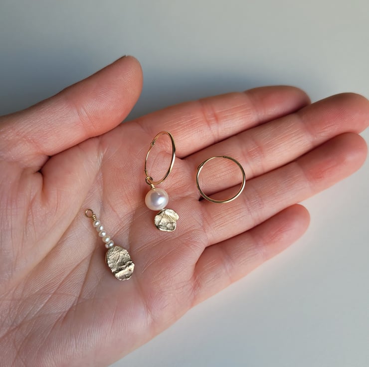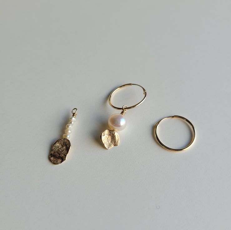 The gold forms and pearl pieces can be taken off so that you can wear the creole hoops on their own, or mix and match with the forms, to create a different mismatched style each time you wear them, if you wish.