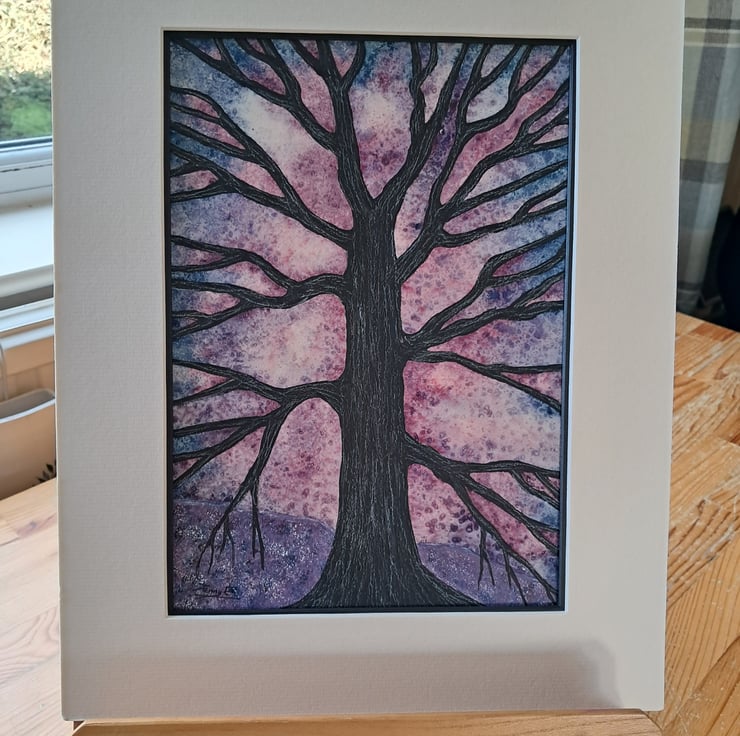 The painting will be mounted in an antique white mount and supplied in a black custom made frame.