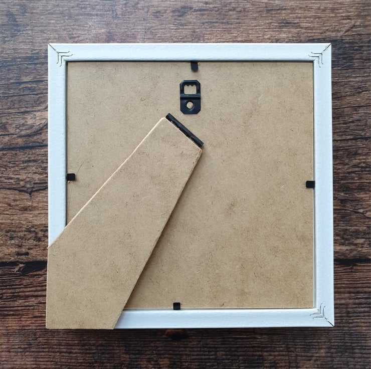 The frame measures approximately 17.5cm x 17.5cm that can be displayed either on a wall or a shelf.