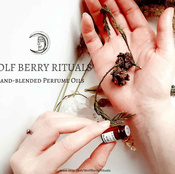 A delicious dark magick perfume oil. Hand-blended by Wolf at her Witchcraft Workshop.