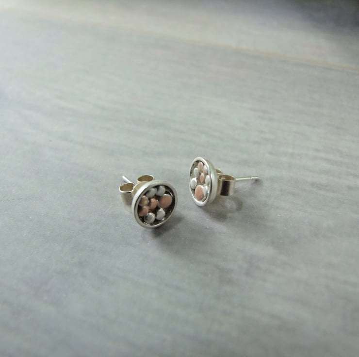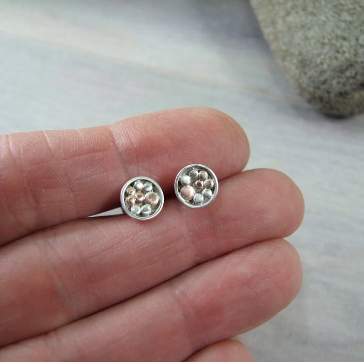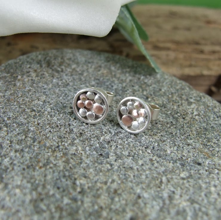 Silver Bubbles Studs. Silver Stud Earrings with copper and silver bubbles..