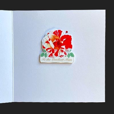 This card says Happy Mother's Day and 'To the loveliest Mum' inside with a smaller rose.