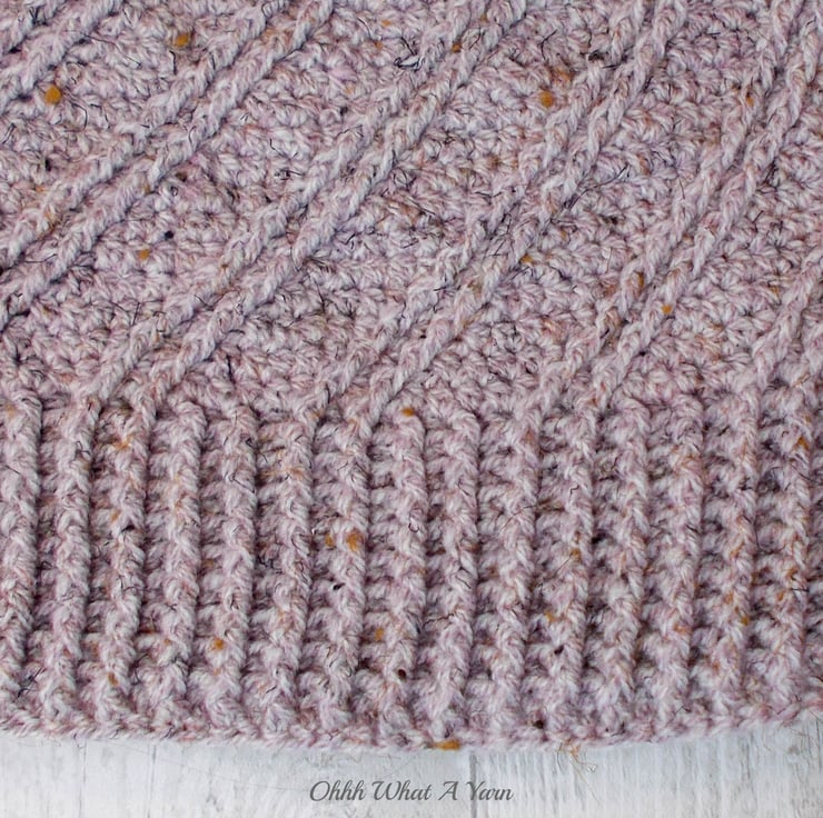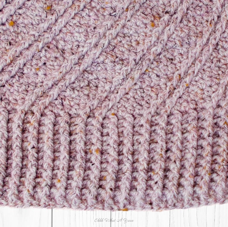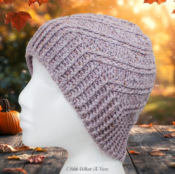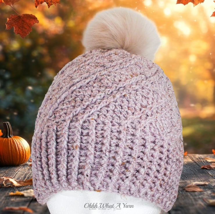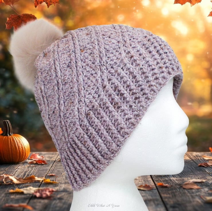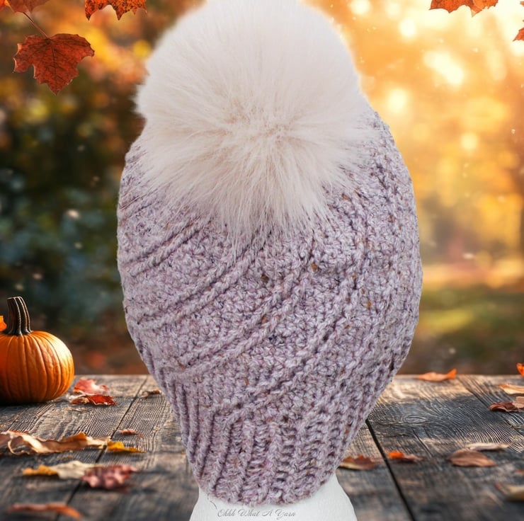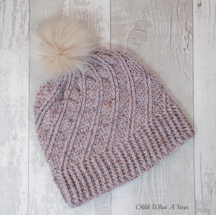 It has a gorgeous ridge pattern that creates a fabulous swirl effect and a ribbed edging. I have added a faux fur pom pom. There is a button on the inside of the hat so you can easily remove the pom pom by unhooking the loop around the button if you prefer your hat fluffless and for washing purposes.