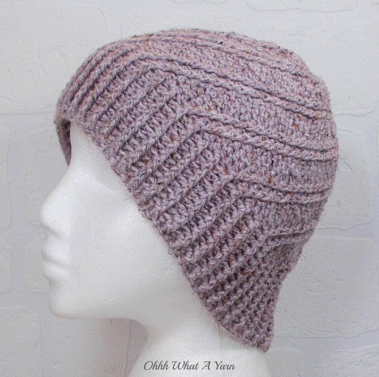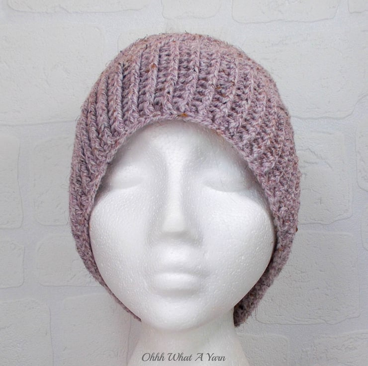 This cosy hat has been crocheted using gorgeous 100% acrylic yarn in a lovely oatmeal, brown marl colour. It is one size and due to the stretchy nature of crochet should fit most ladies’ heads.