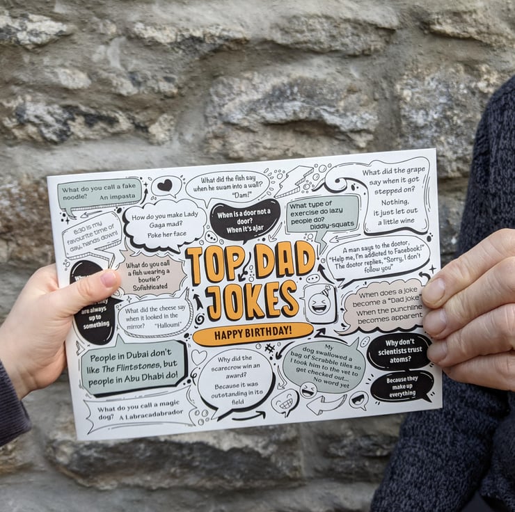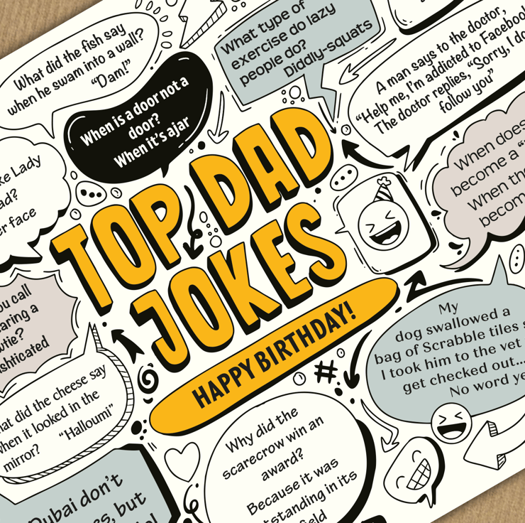 Bursting with our pick of top Dad jokes, this makes the perfect birthday card for a joke-loving Dad.