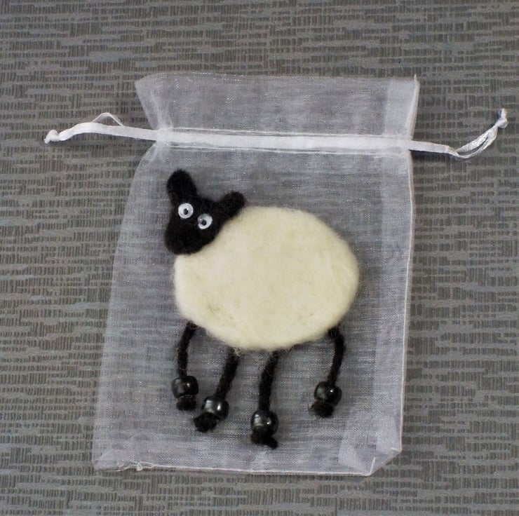 Sheep fridge magnet made from felt. This one is natural creamy white with black head and legs. Other colours are available, please message me if you can't find the one you want.