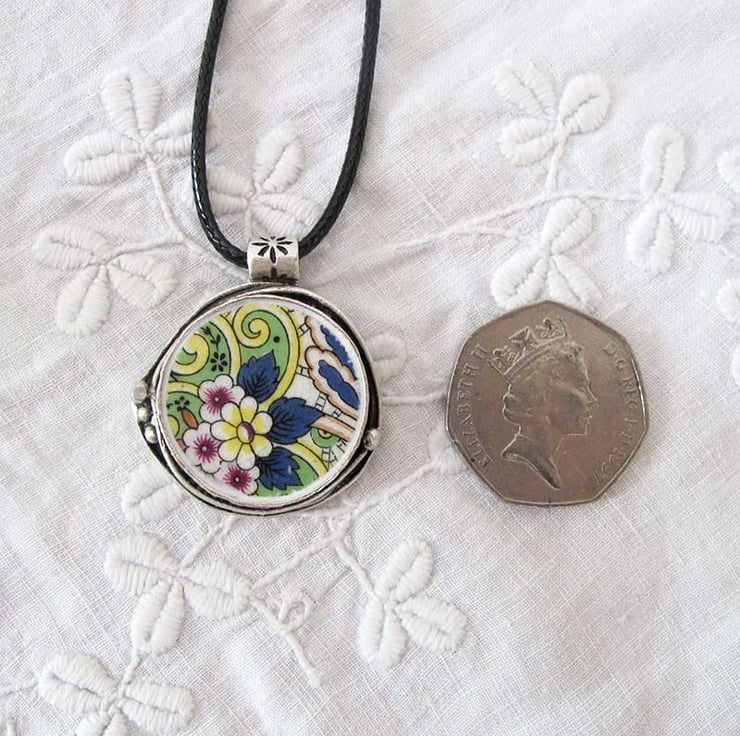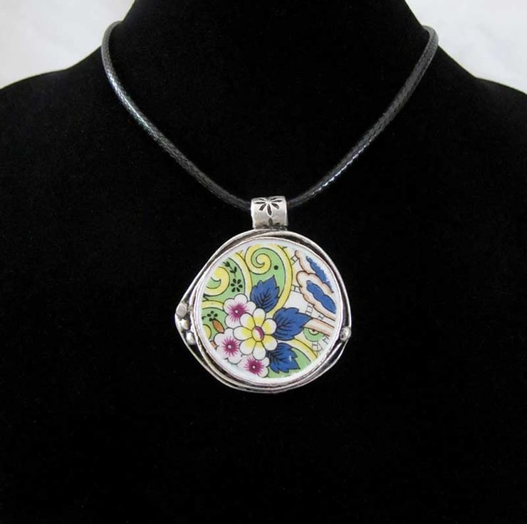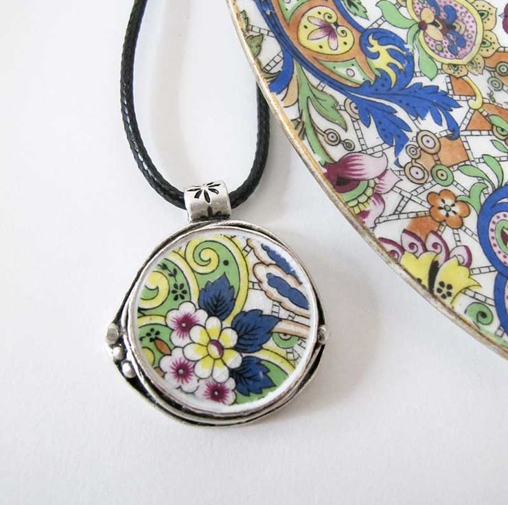 The pendant has been crafted from broken, chipped or crazed china that is no longer fit for purpose - no 'perfect' plates were harmed in the making of my jewellery! This piece is from a very pretty paisley chintz plate by Fenton. Each pendant is a unique statement piece and has its own little characteristics from the vintage china it's been taken from. It makes a very unusual and stylish gift.