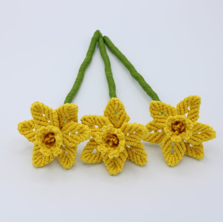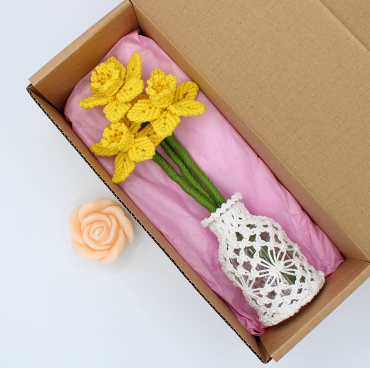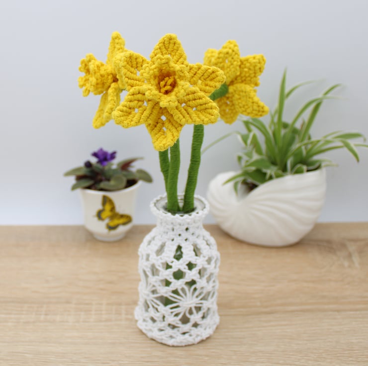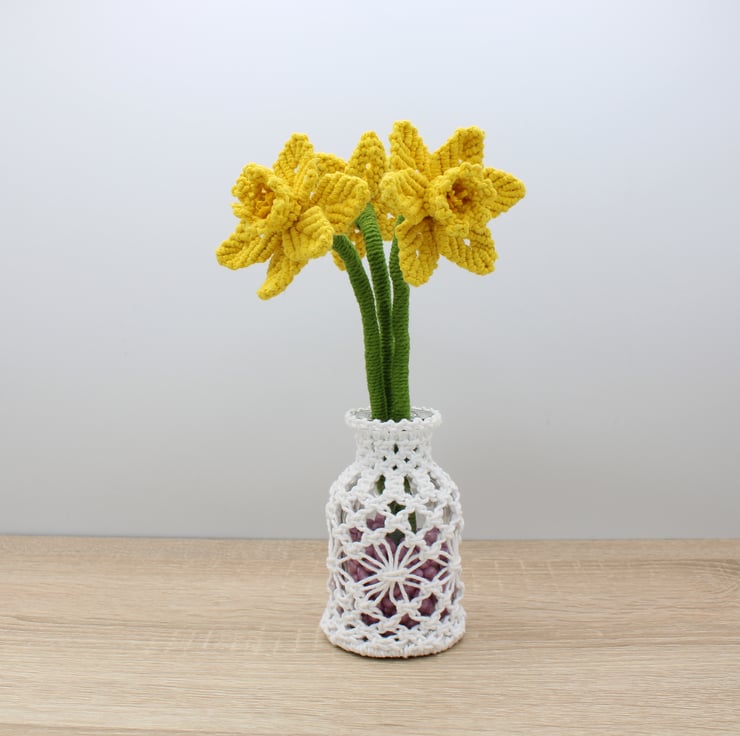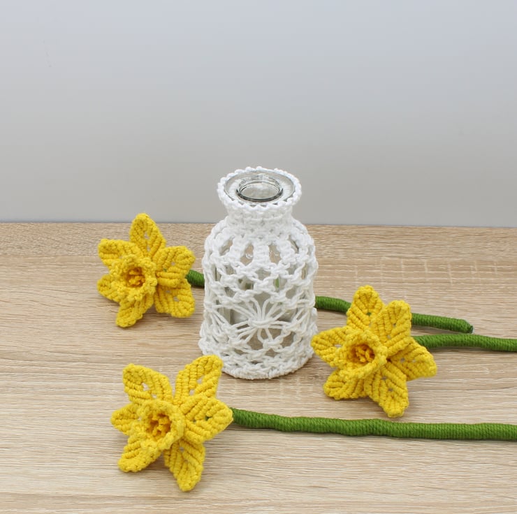 A little vase of everlasting macrame daffodils to add a ray of sunshine to your home.