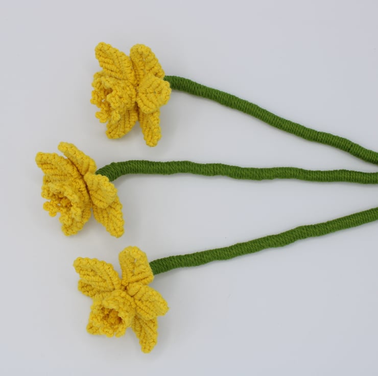Each daffodil has be knotted by hand. Every part of the flower has been crafted separately before joining together into a daffodil. A piece of stub wire runs through the centre of the stems which enables you to adjust the pose.