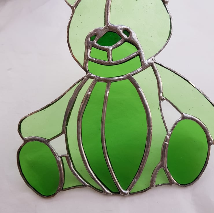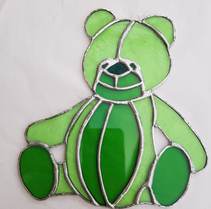 Who doesn't like a teddy bear? My unique handmade design is made using the copper foil technique.