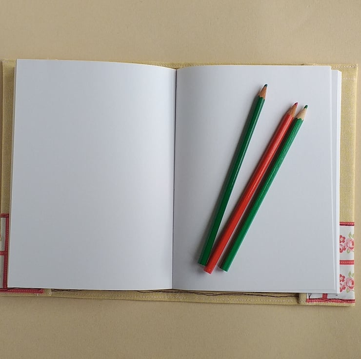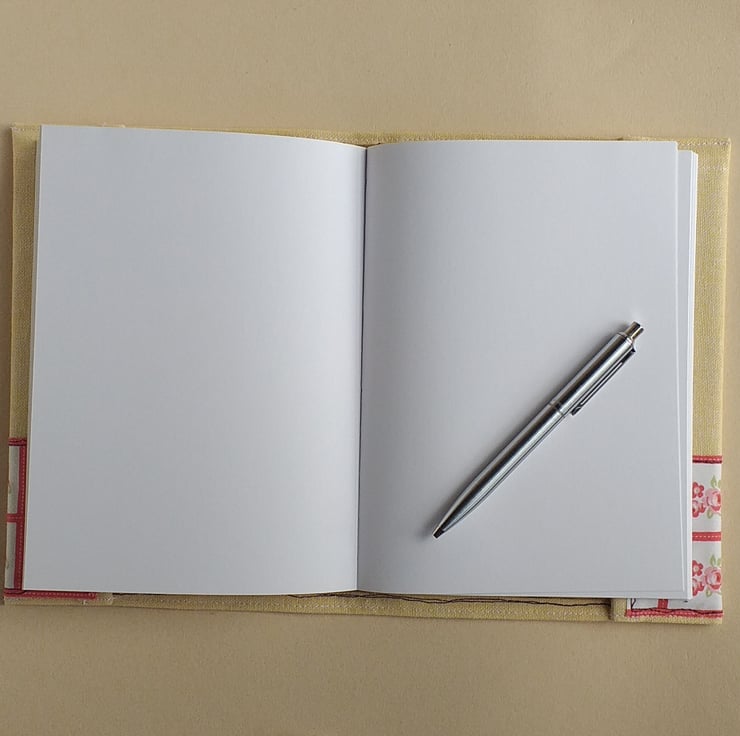 The notebook measures approximately 21cm high and 15cm wide and has blank pages inside, making it perfect as an artist's sketchbook or for journaling or writing. The linen cover can be removed and used on the next book when this one is full.