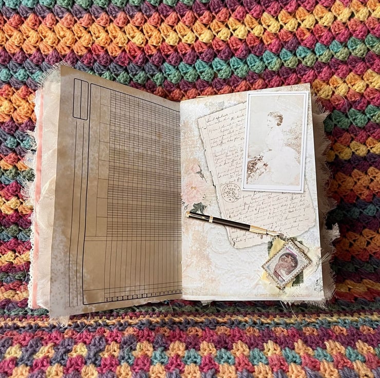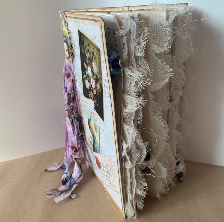 Handmade Junk Journal with handmade ephemera, embellishments, pockets and tags and room to write, draw, journal or doodle.