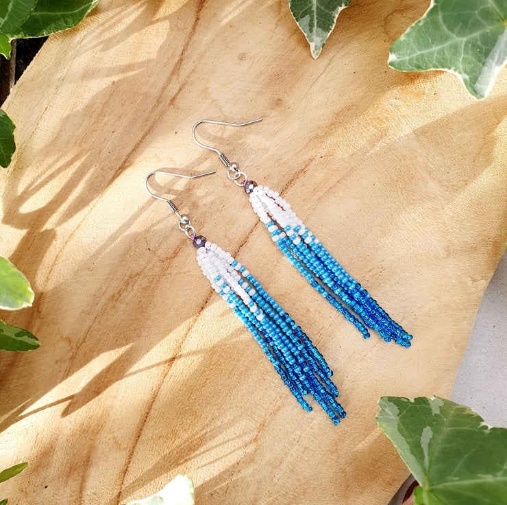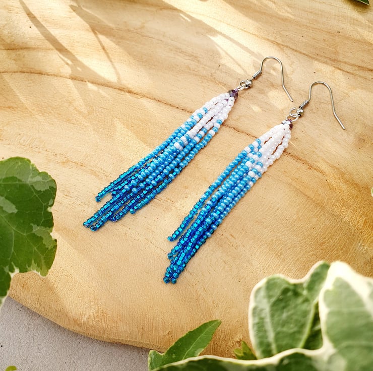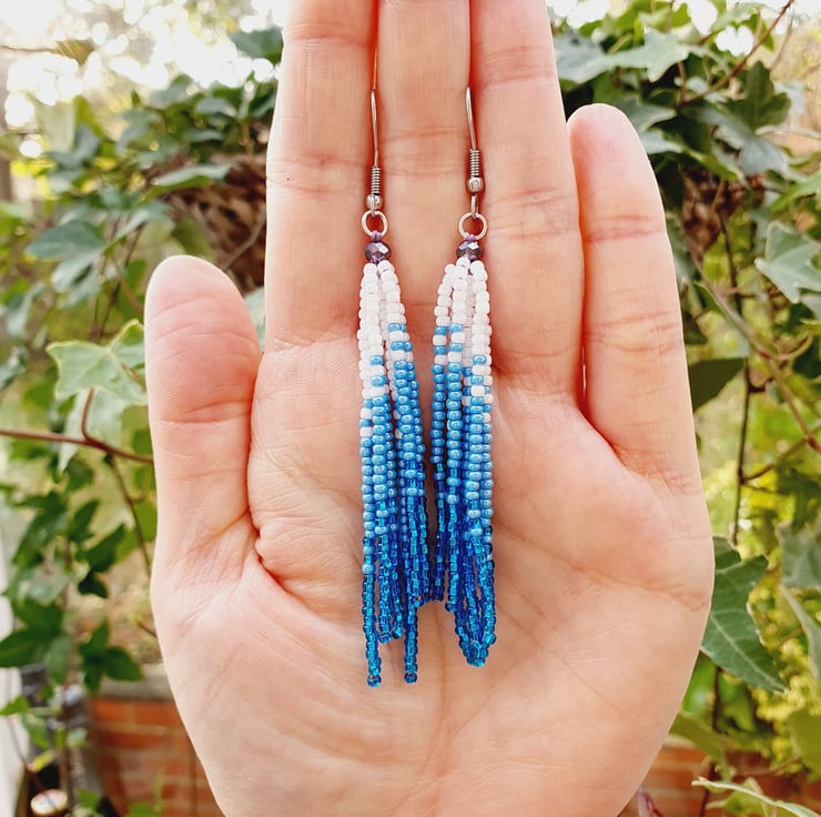 These earrings are made using quality Japanese TOHO and Czech beads. They are measured from the top of the ear hook.
