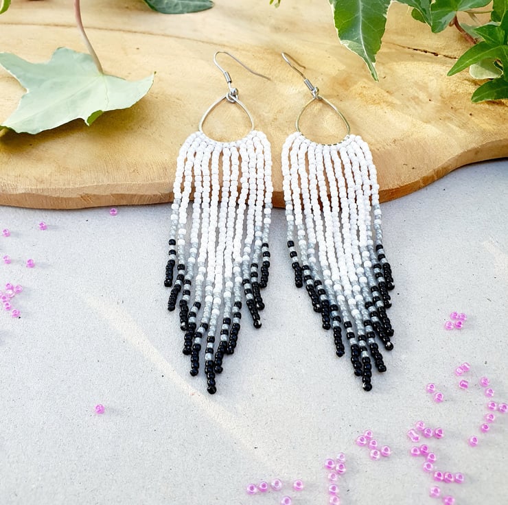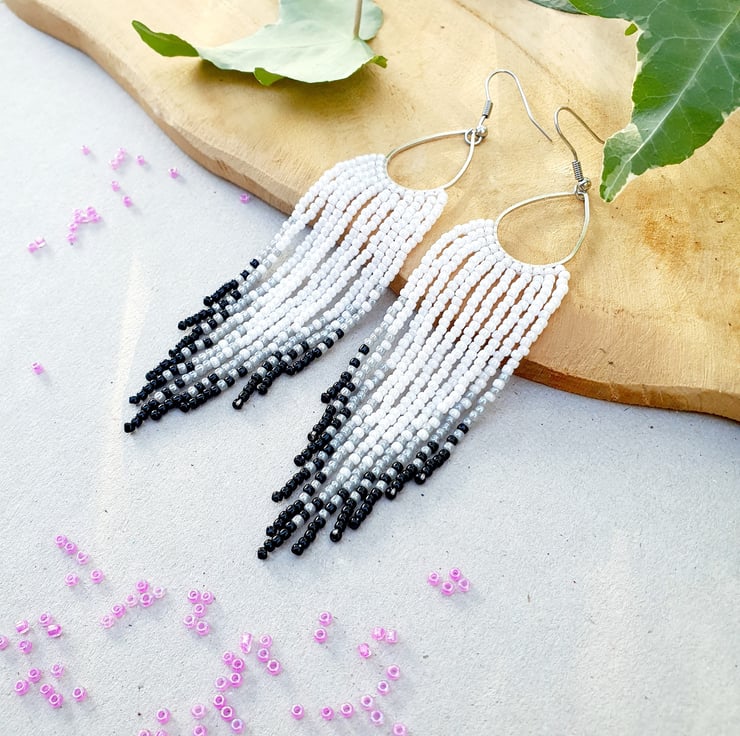 Beautiful beaded fringe earrings. Made with high quality glass beads. They are perfect for special occasion and everyday use. They will transform your daily outfit into something special and unique. They are perfect for a gift.
