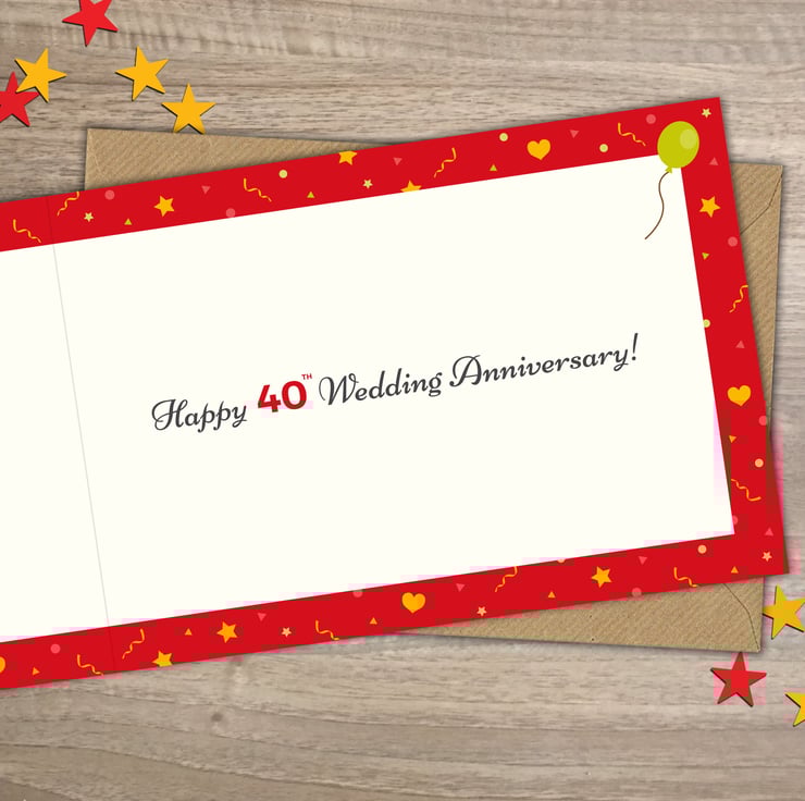 Message inside card reads: Happy 40th Wedding Anniversary!
