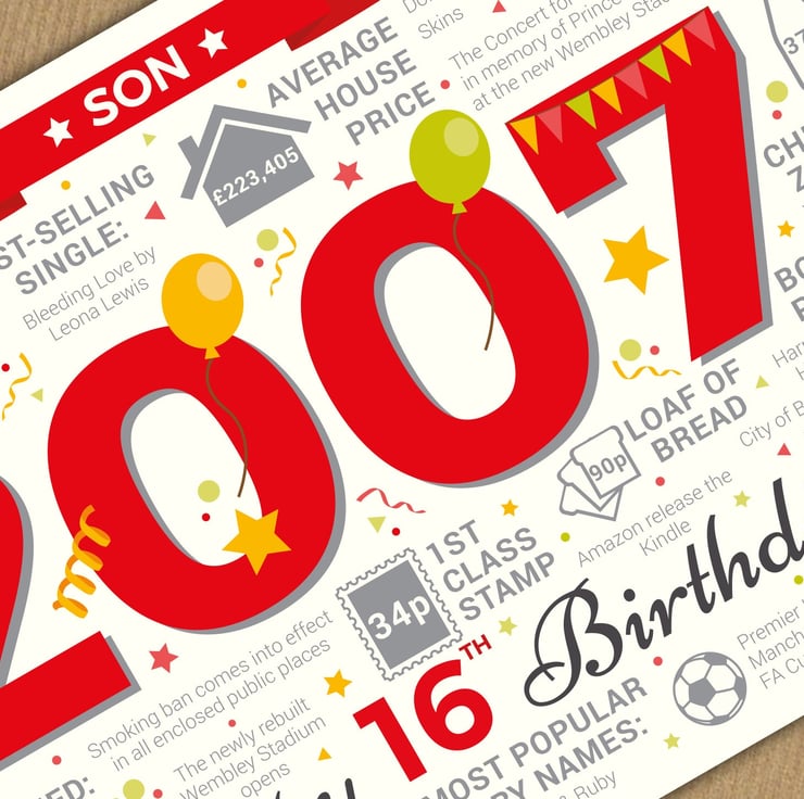 Bursting with facts from 2007, this card makes an interesting read for a Son celebrating his 16th birthday in 2023.