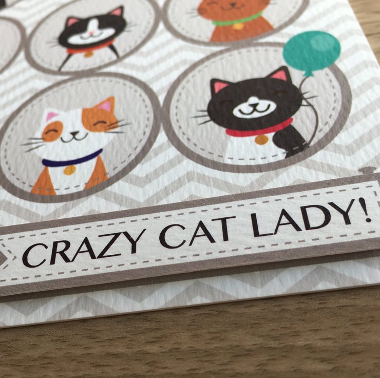 The card reads Happy Birthday and has a 3D flag which reads CRAZY CAT LADY!