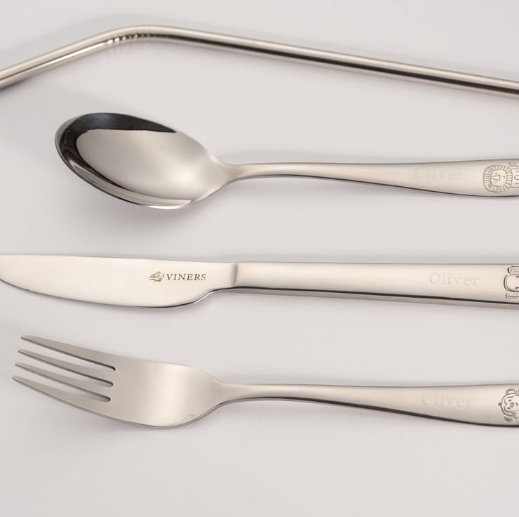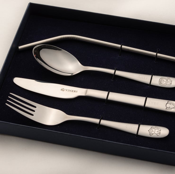 They feature a beautifully embossed design of an Elephant, Monkey and Lion on each piece of cutlery plus a quality stainless steel straw.