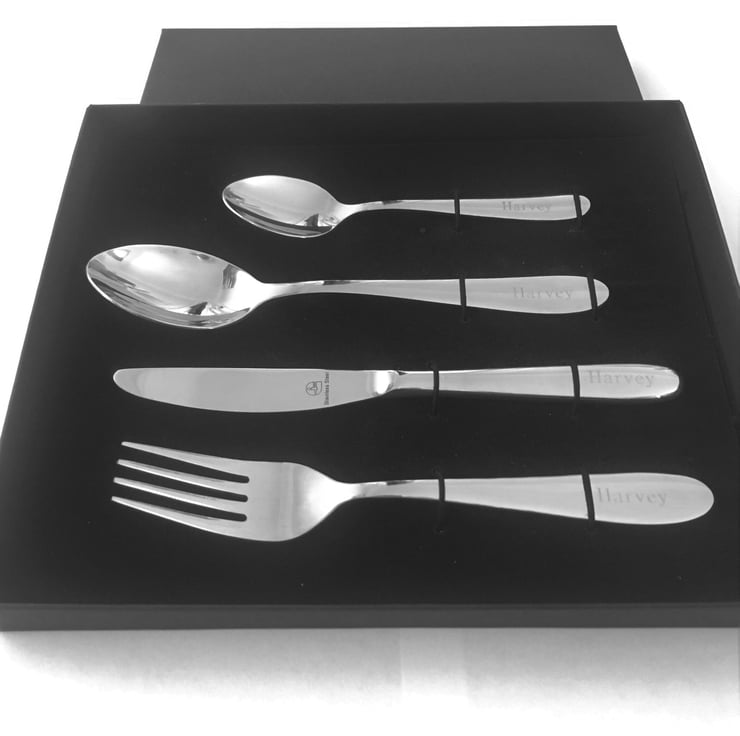 Includes 1 dinner knife, fork, dessert spoon and teaspoon.