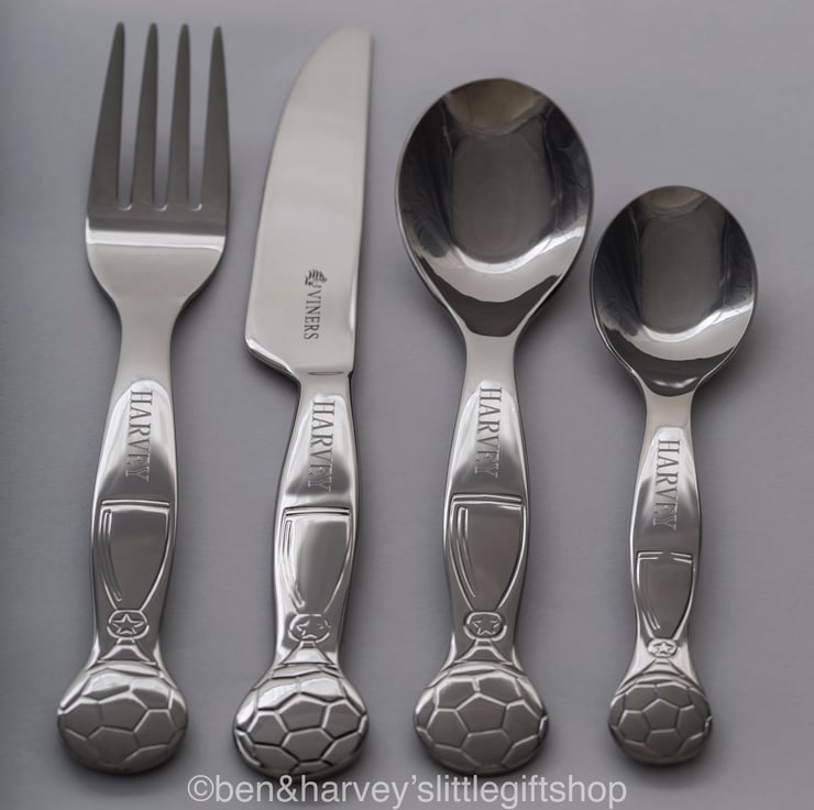 They feature a beautifully embossed Football and trophy design on each handle.