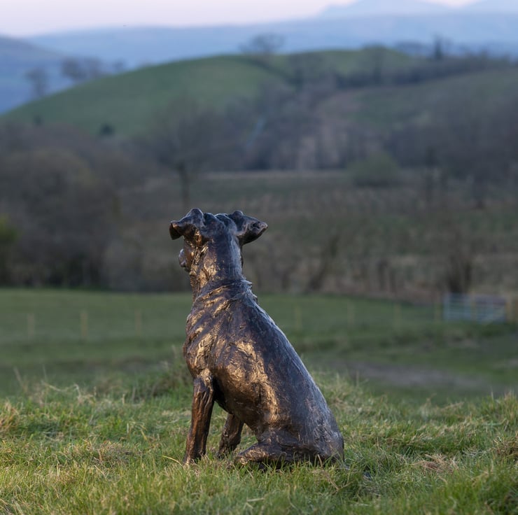 “The Sitting Jack Russell Terrier sculpture was a commission of Missy, who I visited in person. She was a sweet little dog who enjoyed sitting on the home office windowsill. Missy’s owners also owned a lovely spaniel, and having purchased the Sitting Cocker Spaniel at Chelsea Flower Show, Missy was commissioned as a surprise birthday present.”