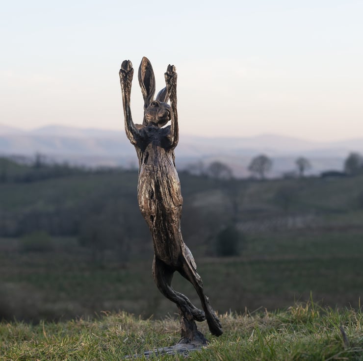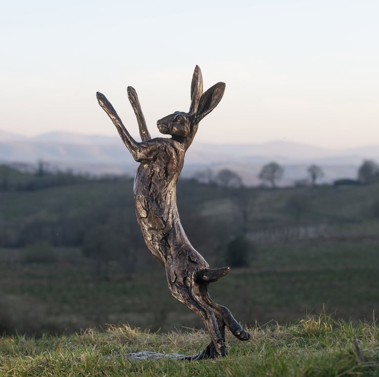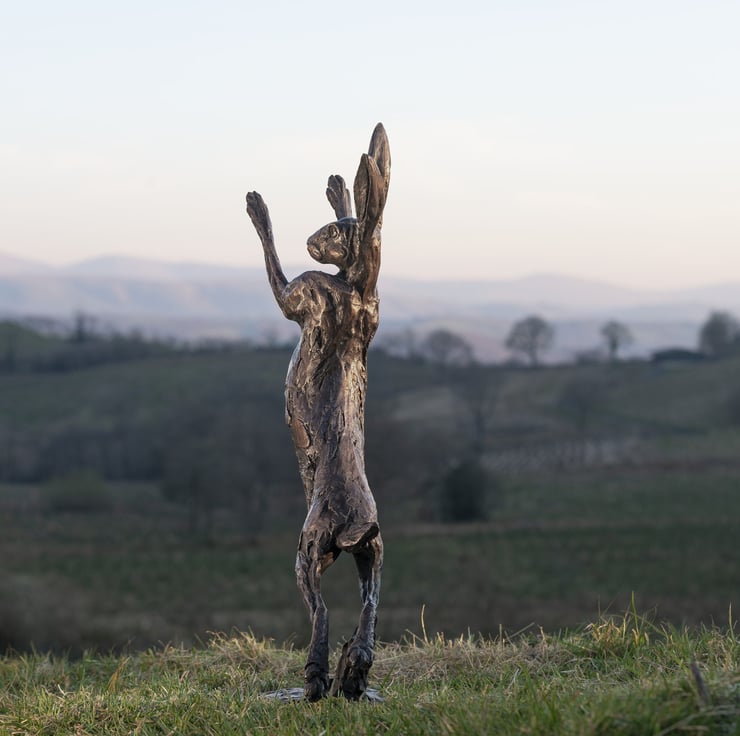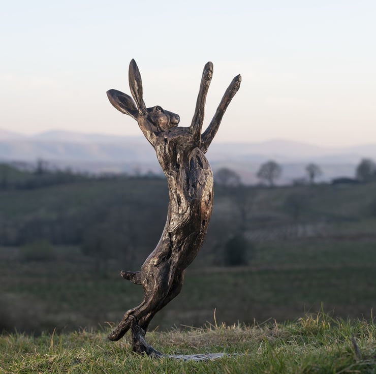 "I really wanted to capture the essence of a Hare in this sculpture. You rarely see a Hare standing still as they are always leaping and jumping with such energy. I studied the movement of Hare’s to evoke this sense of freedom and playfulness whilst accentuating its large ears and powerful legs."