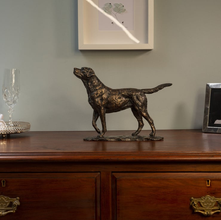 Bring a piece of the outdoors inside with this beautifully finished Standing Labrador bronze sculpture, the perfect gift for dog or labrador lovers.