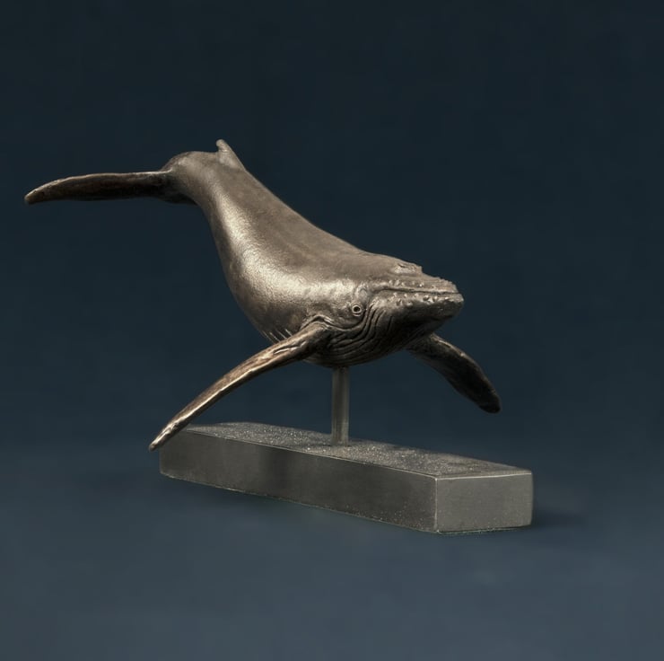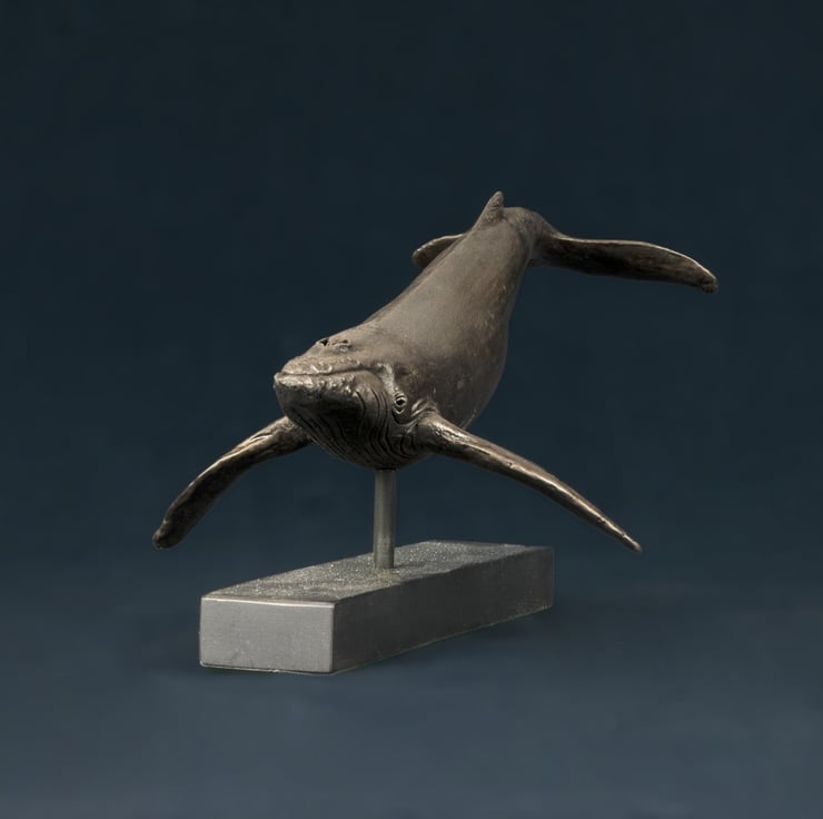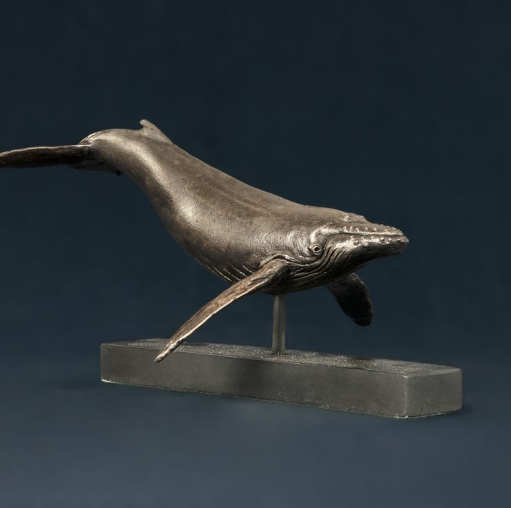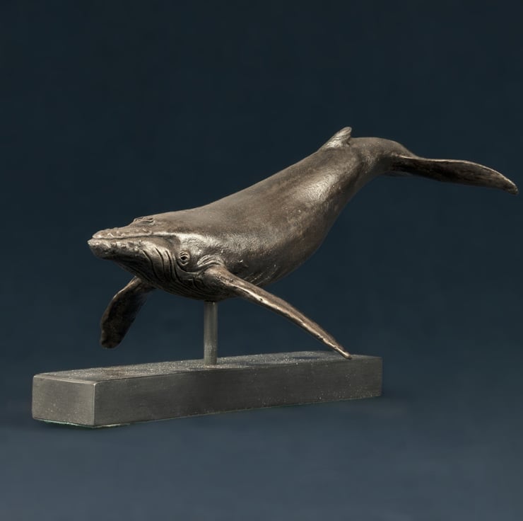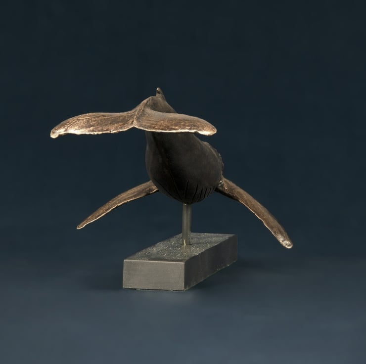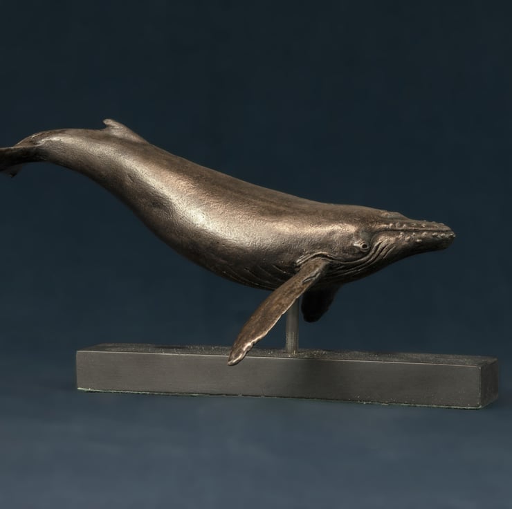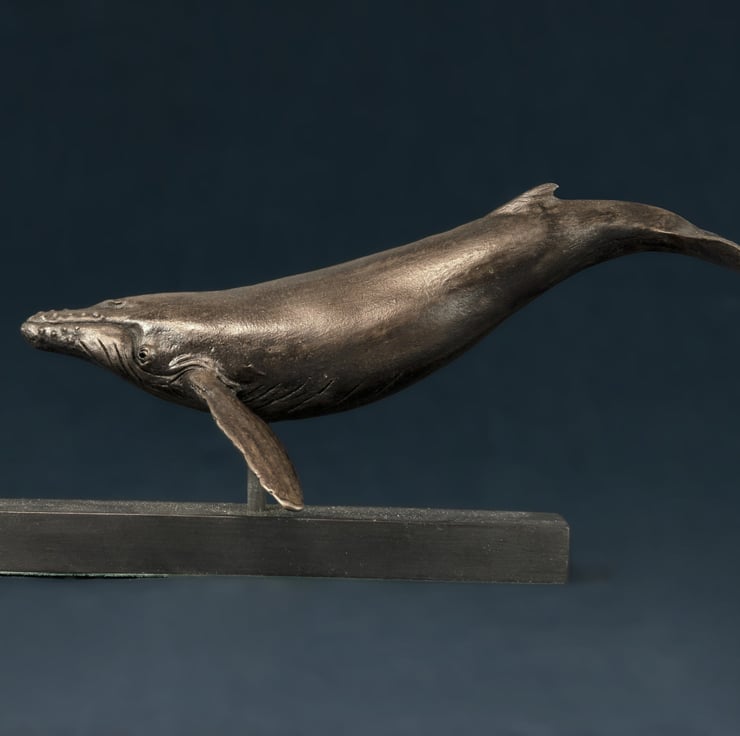 "This Single Whale sculpture is one of my earlier sculptures. I sculpted it for myself as I think theyre beautiful and I love their gentleness. I enjoy their family bond and some time later I went on to sculpt a humpback Whale and Calf.