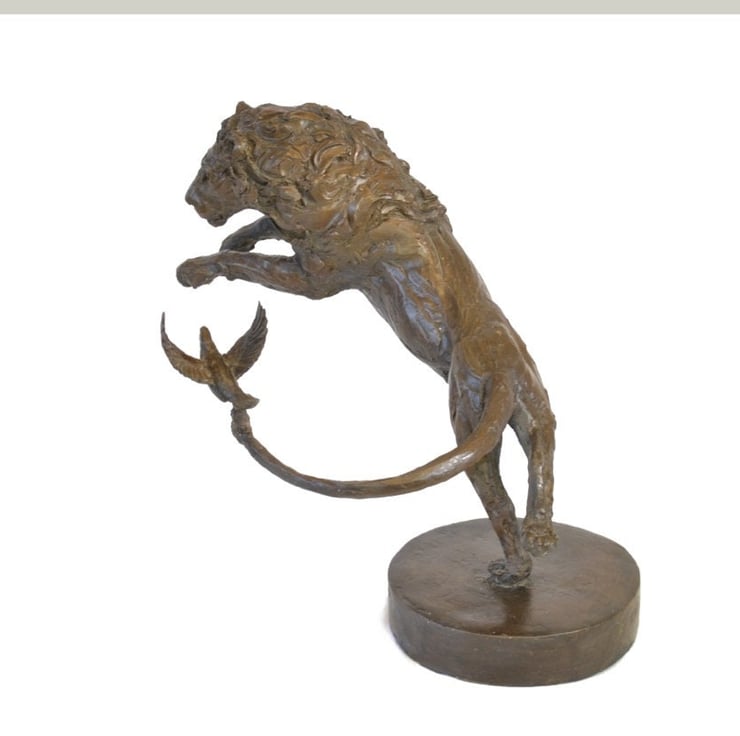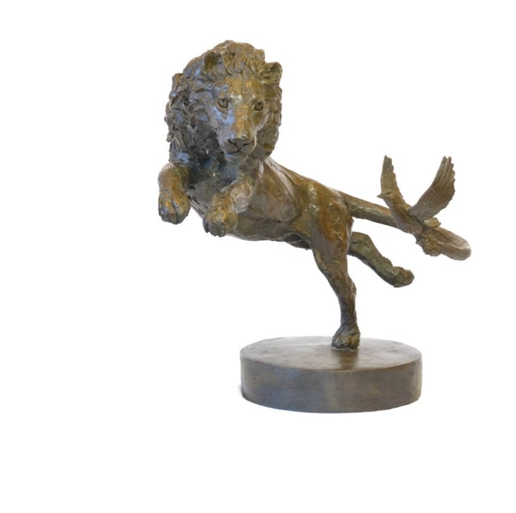 The stunning Lion and Dove bronze sculpture is an outstanding piece of art, perfect for wildlife, animal or lion and dove lovers.