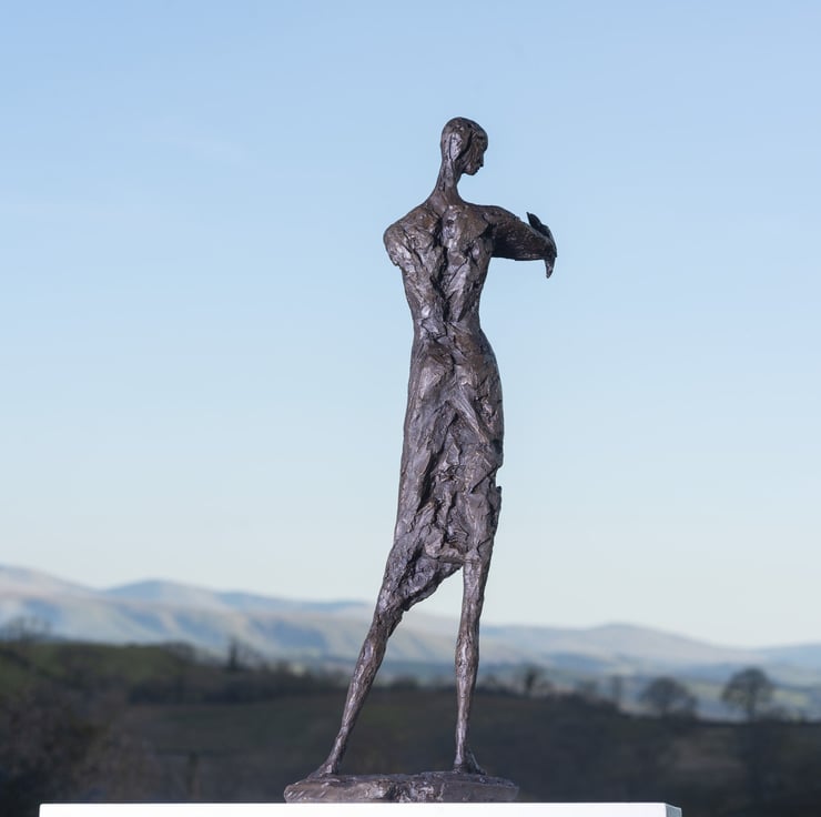 The stunning 'Communion' Girl Speaking to Bird bronze sculpture is an outstanding piece of art, perfect for animal or bird lovers.