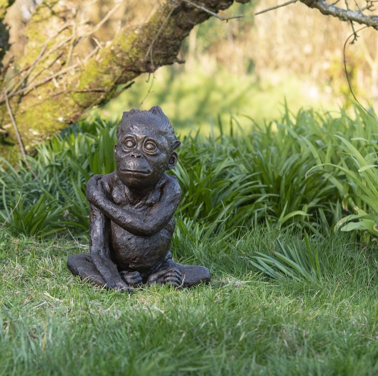 Your medium bronze orangutan sculpture will be packaged with care and include our premium, embossed Tanya Russell certificate box and cleaning kit. The perfect collectible for garden art and wildlife fans, your Baby Orangutan statue will be shipped to you double wrapped for extra protection. We ensure that all our packaging is recycled or recyclable wherever possible and carbon-offset with tree planting.