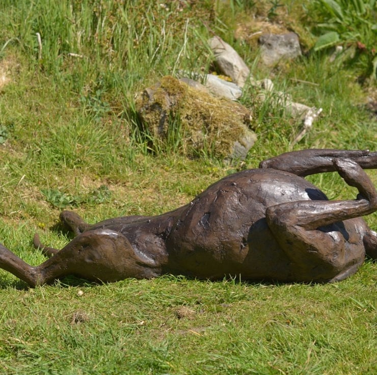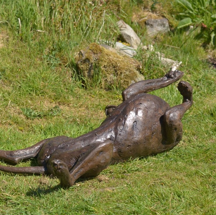 “This Vizsla statue was a commission of a really special girl called Poppy. She had very sadly passed on just before the sculpture was commissioned, so I never got to meet her, but I heard a lot about her from her mum and had a lot of photographs. She had such a sweet face and obviously was devoted to her family. Apparently she used to spend a lot of time lying on her back like the sculpture, on the grass next to where her mum was doing her gardening. They are planning on putting the sculpture in her favourite spot in the garden, so that they can have her with them always.”