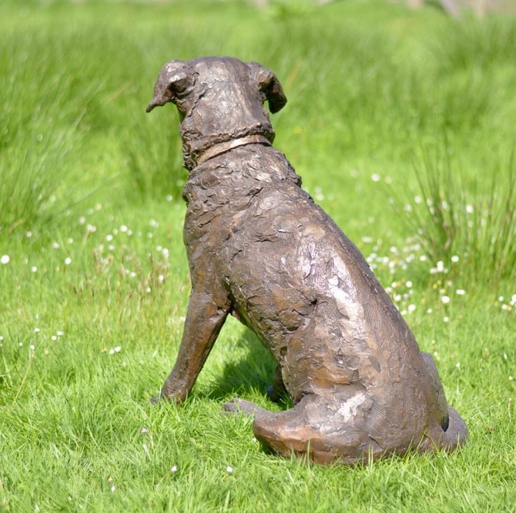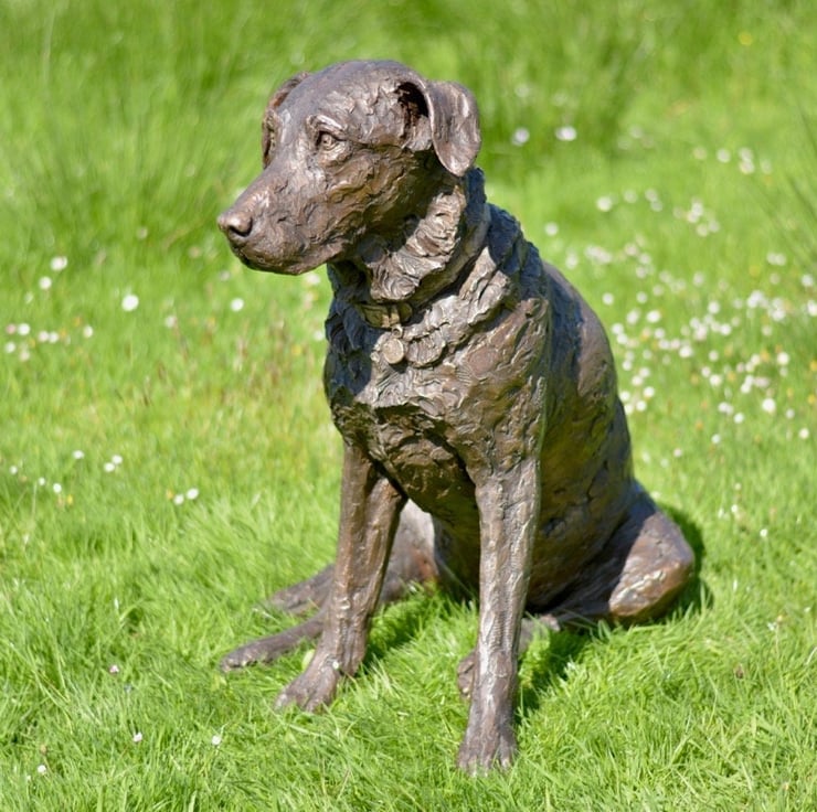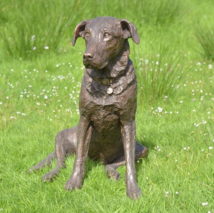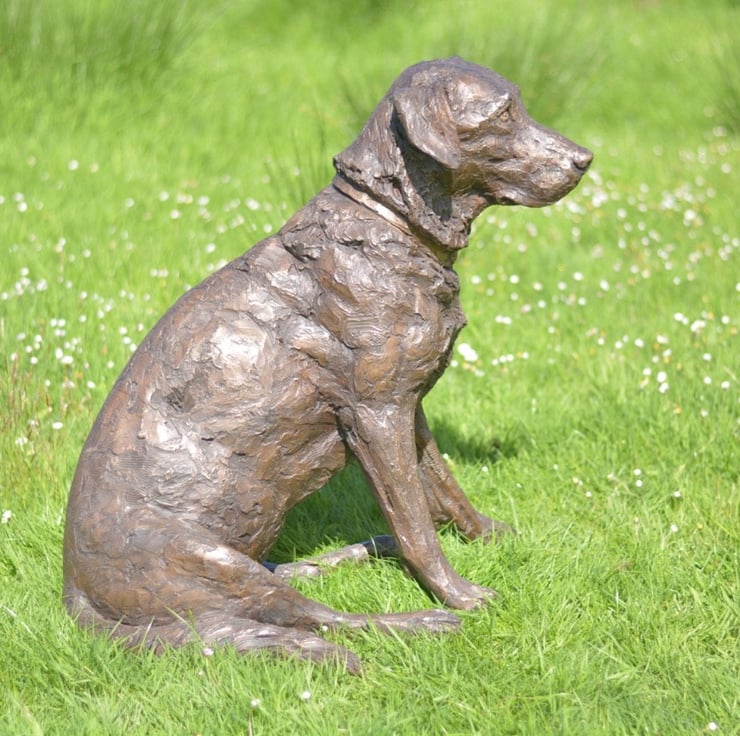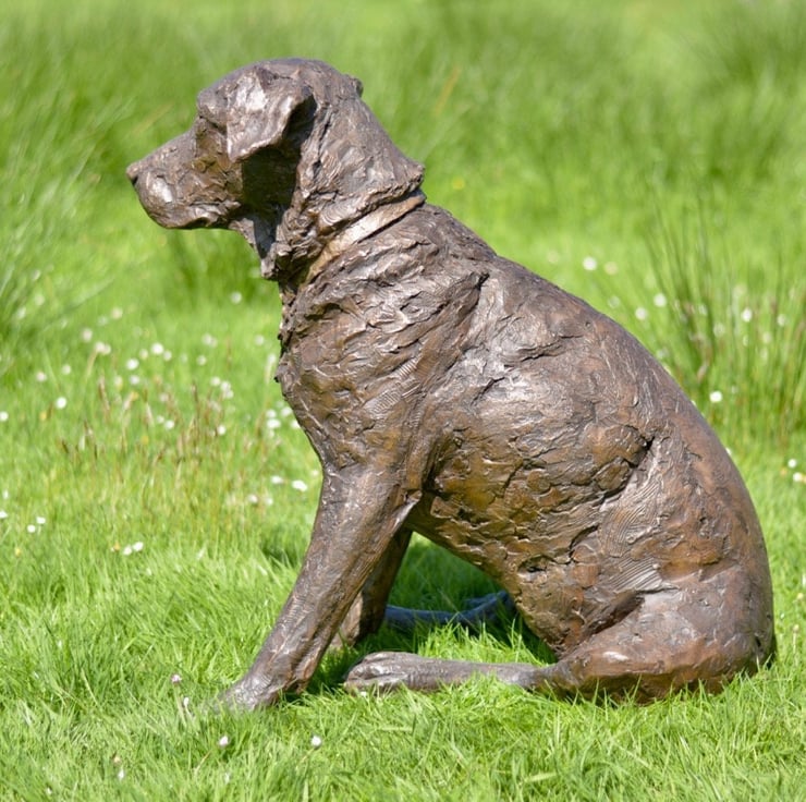 "The Sitting Labrador 2 sculpture was commissioned of Maggie, who visited me here on our farm 'in person' for a sitting. It was lovely meeting her, she was perfectly behaved and as an older girl, very content to potter close by her wonderful family. She had a very typical habitual relaxed pose with legs to the side, and her facial expression was vert gentle and sweet."