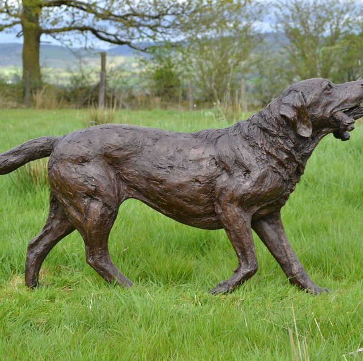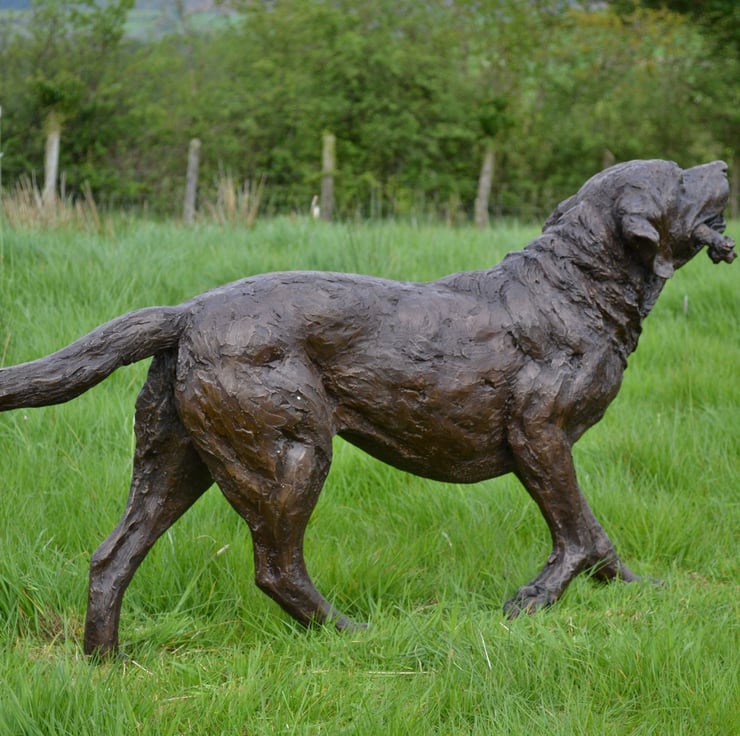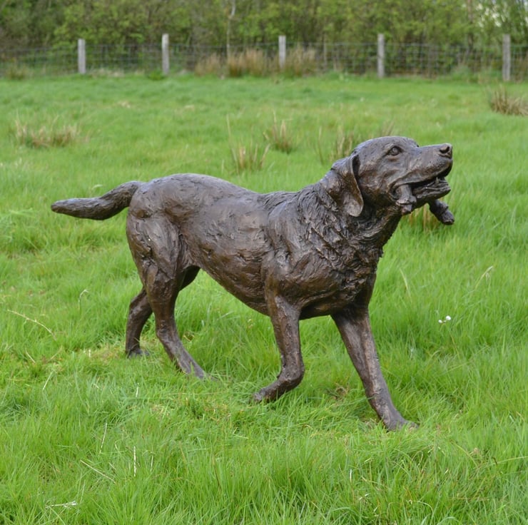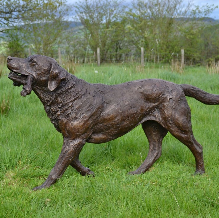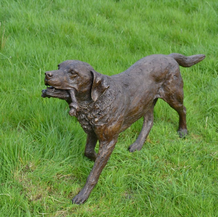 "This Labrador sculpture of Rio was commissioned alongside her companion Toby. Where Toby was an older dog who enjoyed a good cuddle, Rio was bouncy and energetic and the owners wanted to capture her playing with her toy in the garden."
