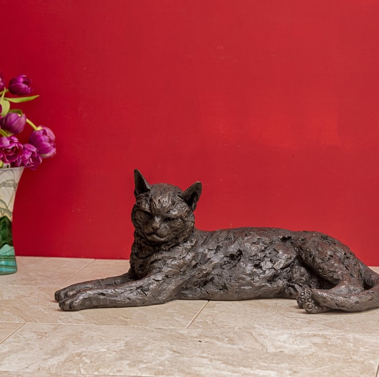 The stunning Lying Cat bronze sculpture is an outstanding piece of art, perfect for animal or cat lovers.