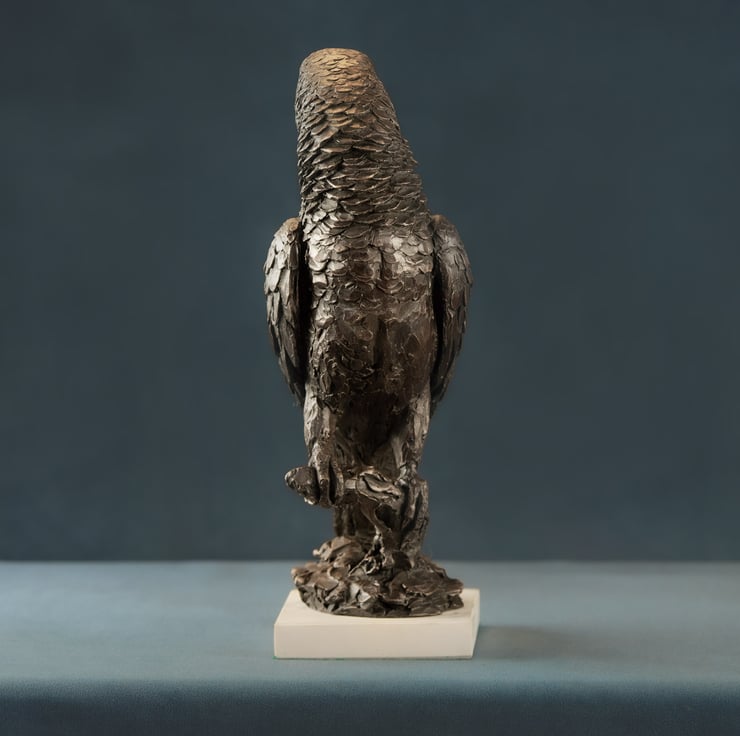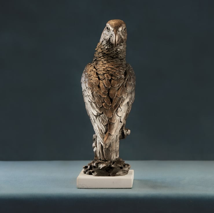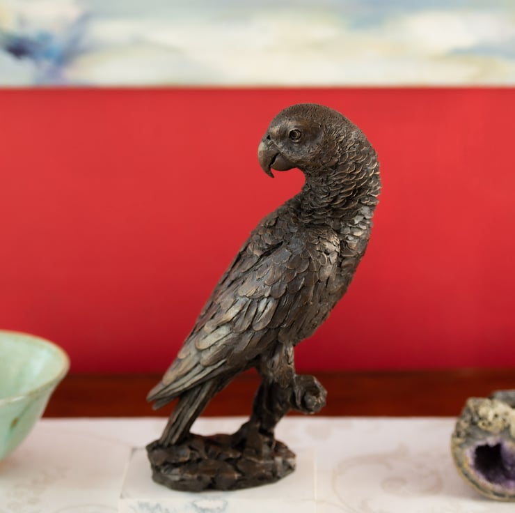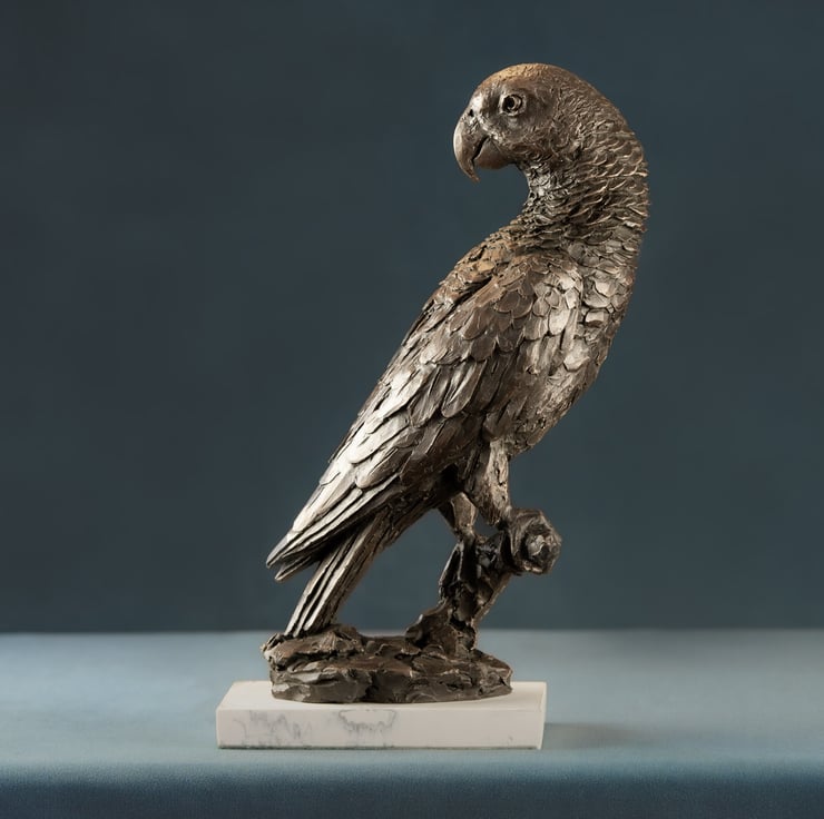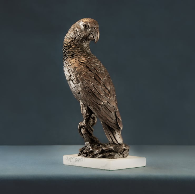 "The Parrot sculpture was commissioned to be mounted atop a headstone to memorialise this wonderful bird. He was sculpted of an adult African Grey parrot named Captain a very talkative and handsome boy! I chose the pose as it was a beautiful, sculptural posture I thought captured Captains insatiable curiosity, beauty and intelligence."