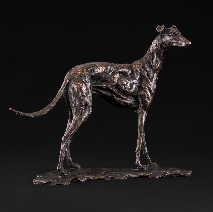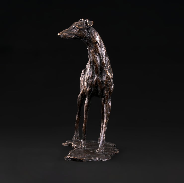 "This greyhound sculpture is modelled on Malcolm, a retired racing greyhound owned by Printmaker Sue Corke. Sue is the Head of Print at The Art Academy.