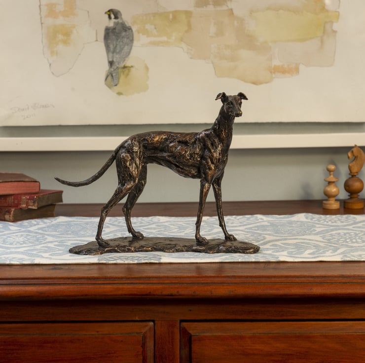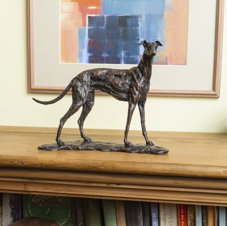 Bring a piece of the outdoors inside with this beautifully finished Standing Greyhound bronze sculpture, the perfect gift for wildlife or dog lovers.