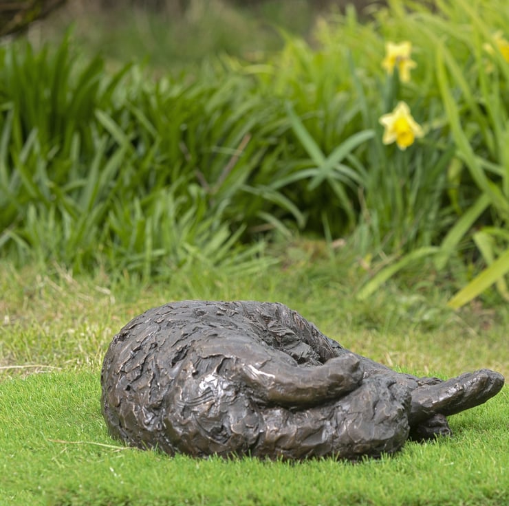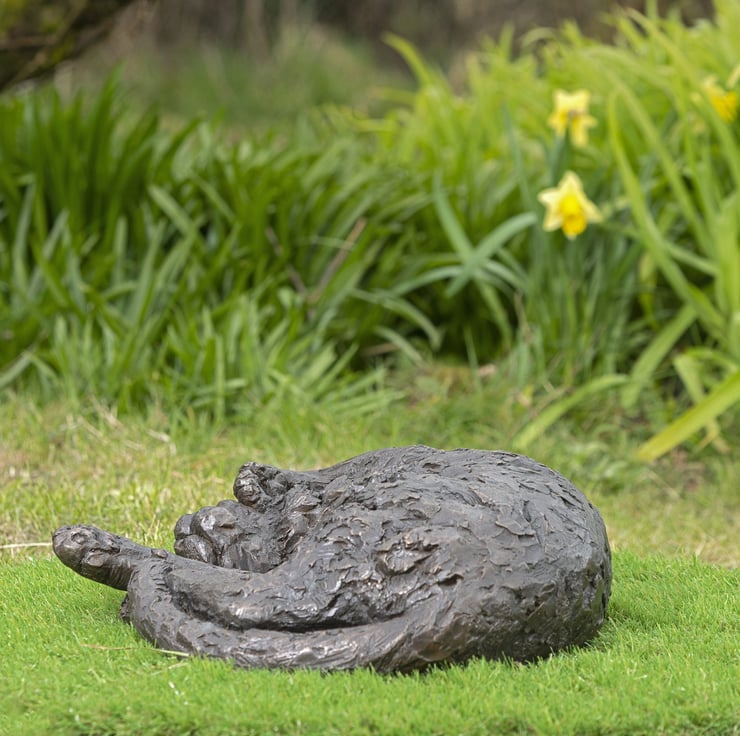 "The Curled Cat statue is a commission of Jack, a British Blue. This was actually his second commission! Where the first had been a standing, arched back pose in 34 life-size, this was a super comfy pose, curled up and sunbathing in the sunshine. The Curled Cat was commissioned as a pair with the Lying Cat sculpture, which was based on Ollie."
