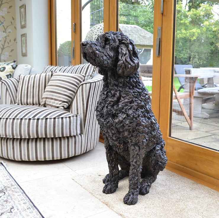 “The Sitting Labradoodle sculpture is of Harry, an old boy who is getting stiff in his back legs but still loves to follow you around and be part of the fun. Harry actually struggled to sit at all when I visited him, but in all other respects he was a star sitter. He was patient with my photos and measurements and waggy at all times! He wasn’t even phased when his sculpture turned up at his home, preferring to enjoy our company and wander into our attempts to video the sculpture in situ, whenever he saw the opportunity.”