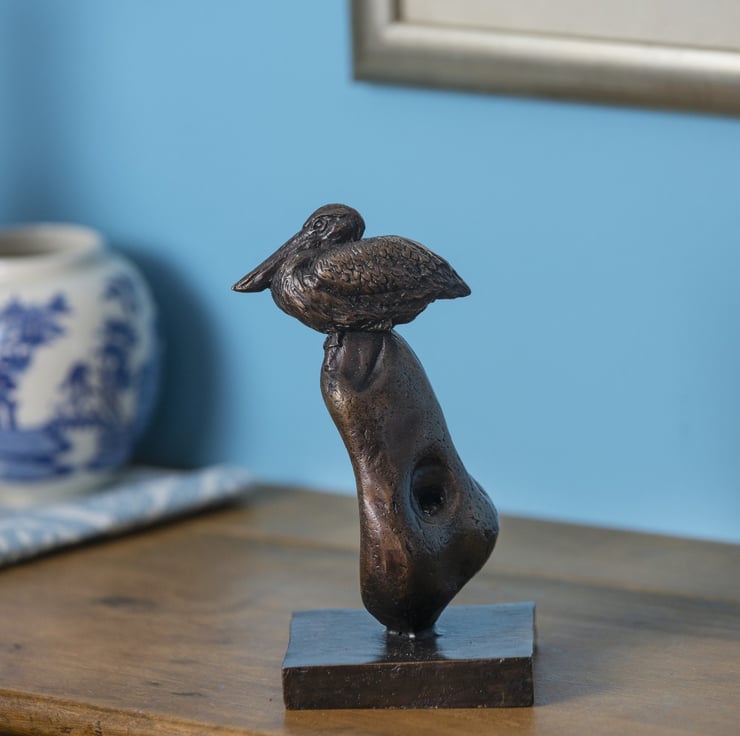 Bring a piece of the outdoors inside with this beautifully finished Pelican on Rock bronze sculpture, the perfect gift for wildlife or pelican lovers.