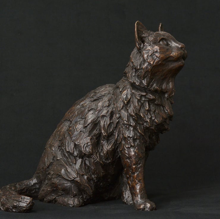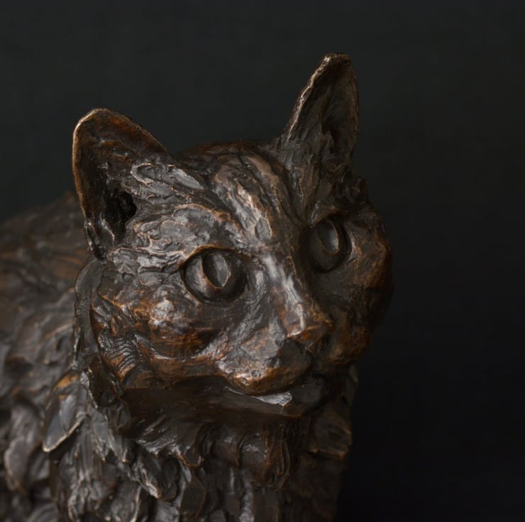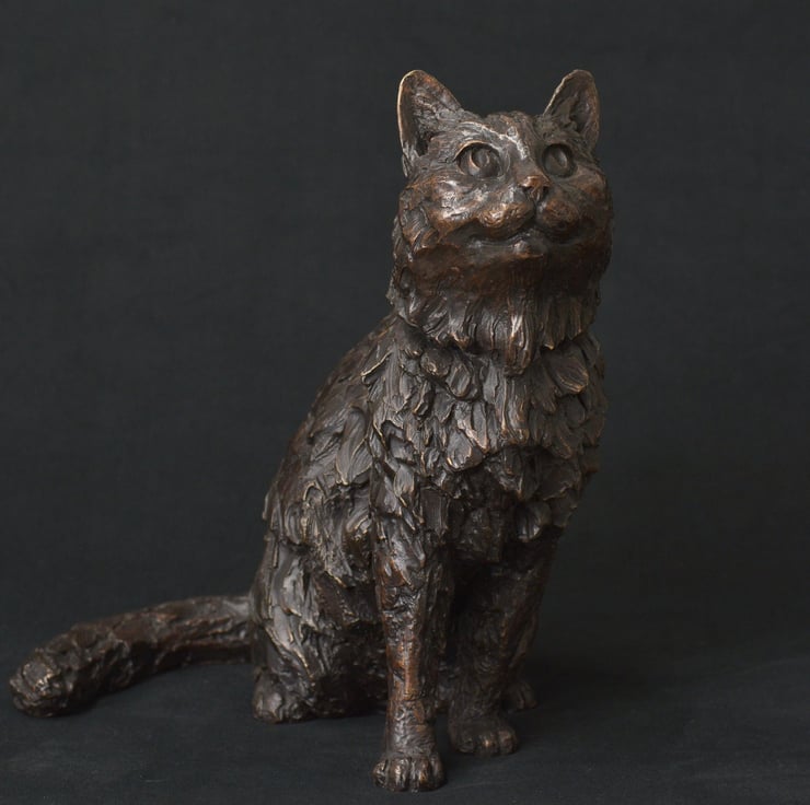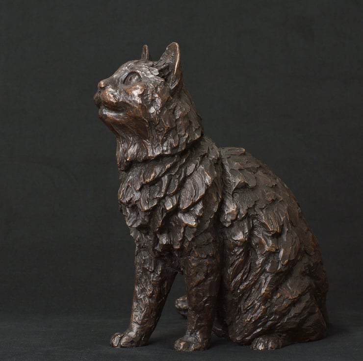 Tanya Russell is a member of the Royal British Society of Sculptors and her sculptures are hand cast by a British foundry. Her Foundry Bronze Longhaired Cat statue will be accompanied by a certificate of authenticity and cleaning kit. This casting is a perfect recreation of the original bronze statue and bears the artists signature and its own unique edition number.
