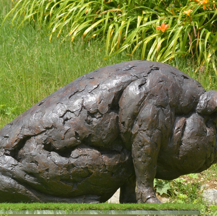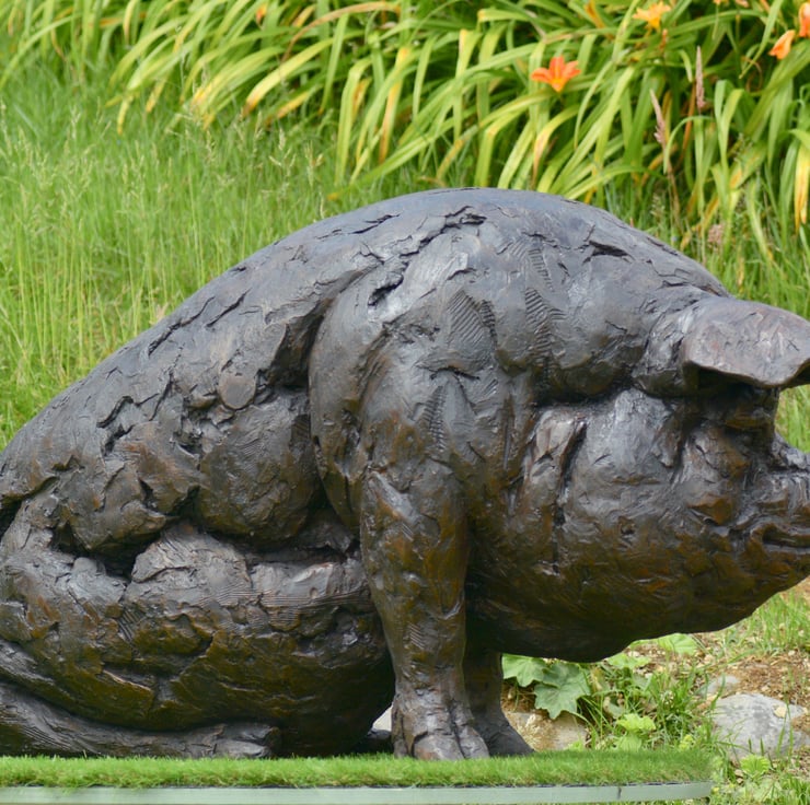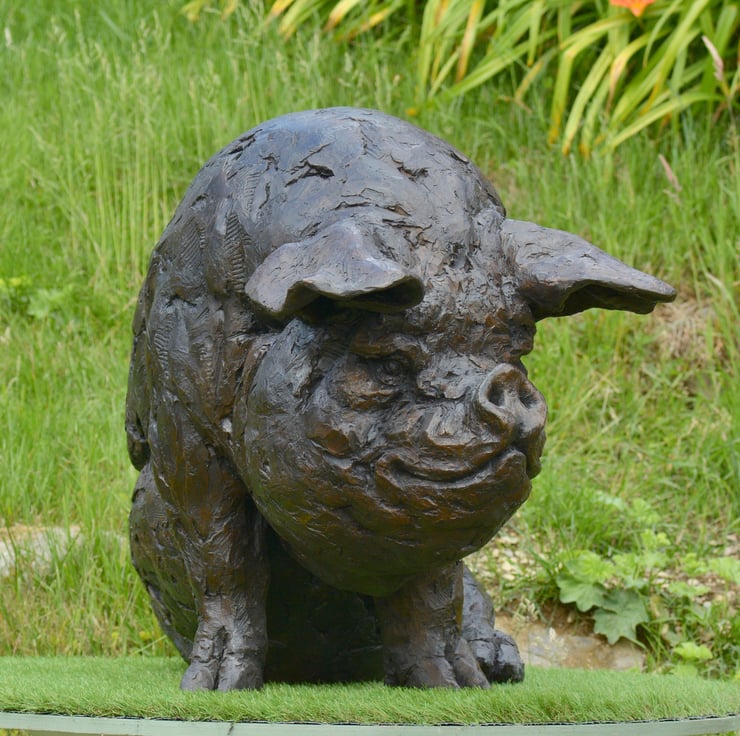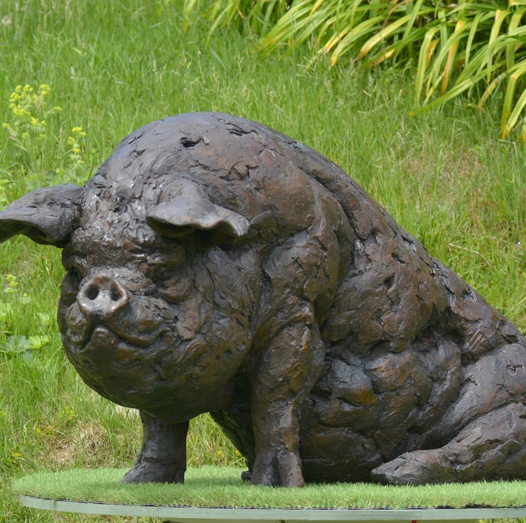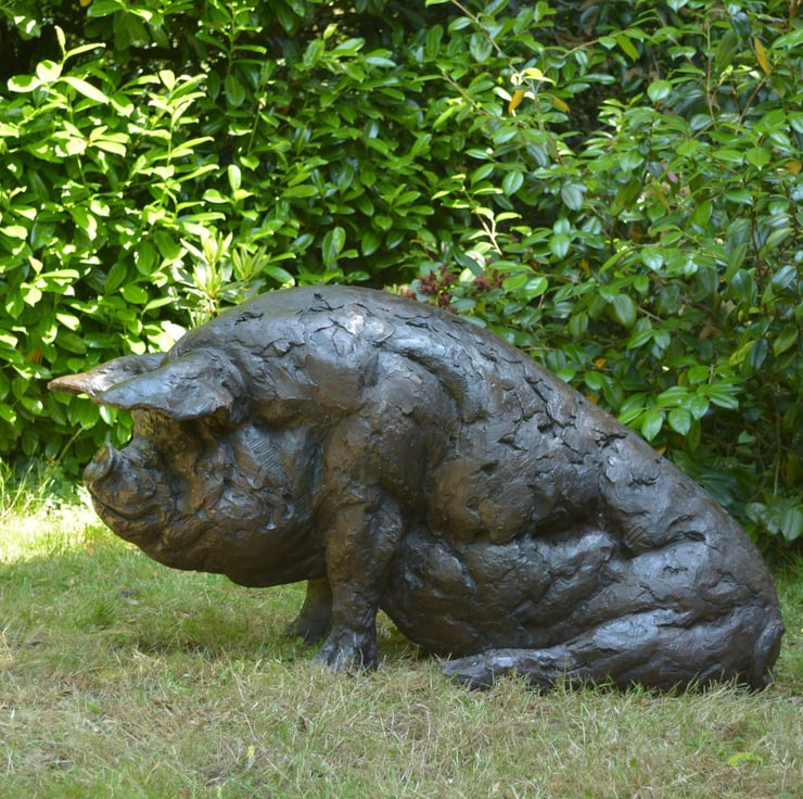 "The Sitting Pig sculpture was commissioned by a client whose family had always loved a pair of bronze pigs at Beale Park. With many photos and memories of the pigs there, they wanted something for their home which would bring many more happy memories in the future. Importantly, they wanted a pig that could be sat on! So more fun photos of their grandchildren could be taken one day.