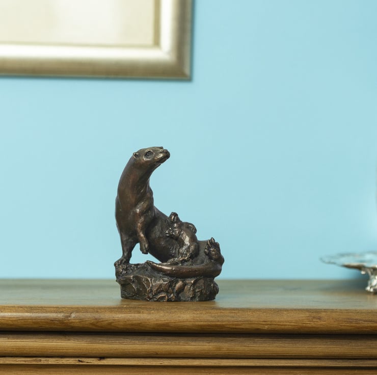 Bring a piece of the outdoors inside with this beautifully finished Otter and Cub bronze sculpture, the perfect gift for wildlife or otter lovers.