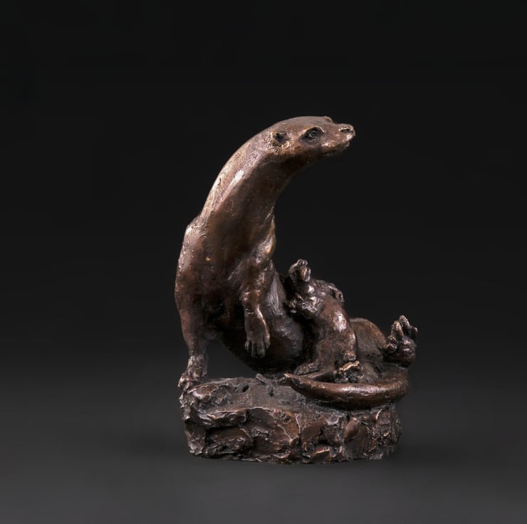 “I sculpted the Otter and Cub sculpture after seeing a film of Otter mums with their cubs, they are so incredibly caring and sweet with each other. Cubs rely on their mothers to take care of them for up to a year after they are born and I wanted the vulnerability and playfulness of the cub to show through whilst the mother is alert and protective.”