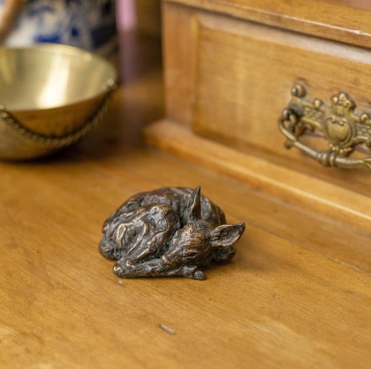 "There is nothing more precious than a little baby fawn curled up in our woodland, left safe by its mother as she goes out to feed. This sculpture is so small but is actually still one of my favorites.